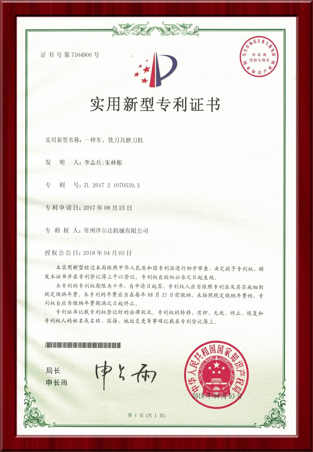 • 專利證書/