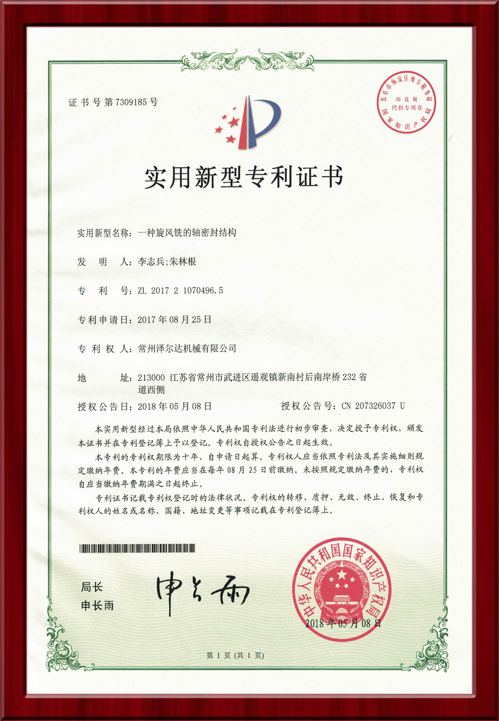 • 7309185實用新型專利