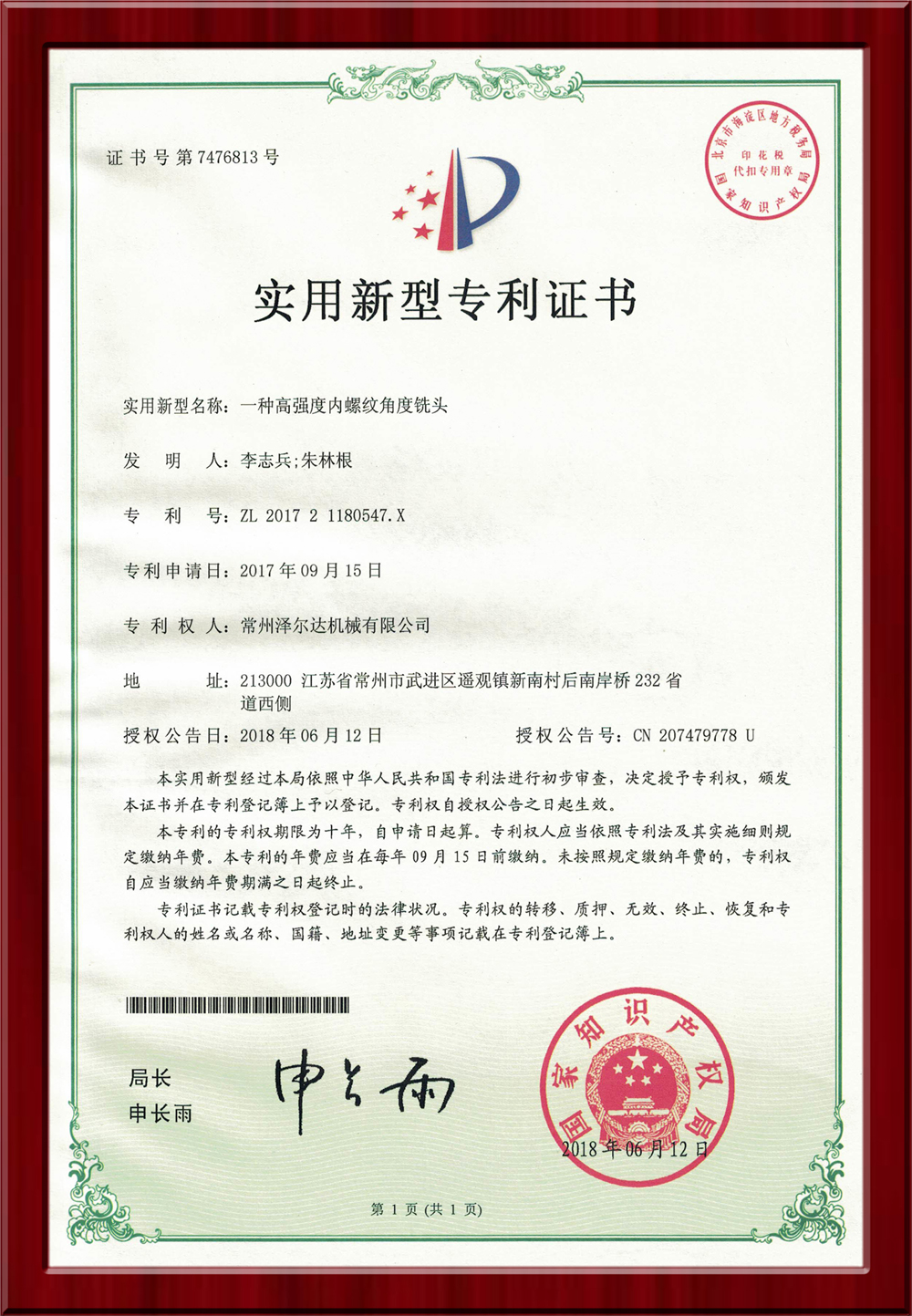 • 7476812實用新型專利